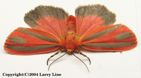 The 2004 images were taken July 11th. The moth was provided by Bob Patterson of Bowie, MD. Larva food is tree lichens.