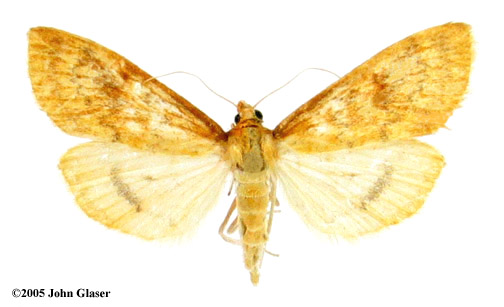 A.A., Calvert, Cecil, Charles, Dor., Kent, P.G., Somerset, Wash. and Wo. Counties. May 6th to June 9th and July 16th to September 11th. This species ranges from Quebec to British Columbia and southward to southern Florida and southern Texas. The larva bores in the buds, fruits and stems of various waterlilies and has been called the lotus borer (Chittenden, 1919; Welch, 1919; Ainsile, 1922, and others cited by Munroe, 1976). Numerous specimens from other states in the USNM were reared from larvae on Nelumbo lotus.
