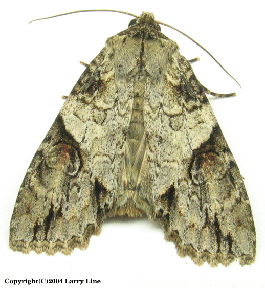 The 2002 (F) image was taken June 8th @ H. The 2004 (F) images (same moth) were taken May 11th. Notice the discal spot just visible on the HW of the spread image. It is visible on the underside image. Larva feed on beeches, birches, cherries, elm, maples and willows.